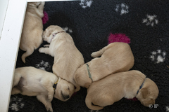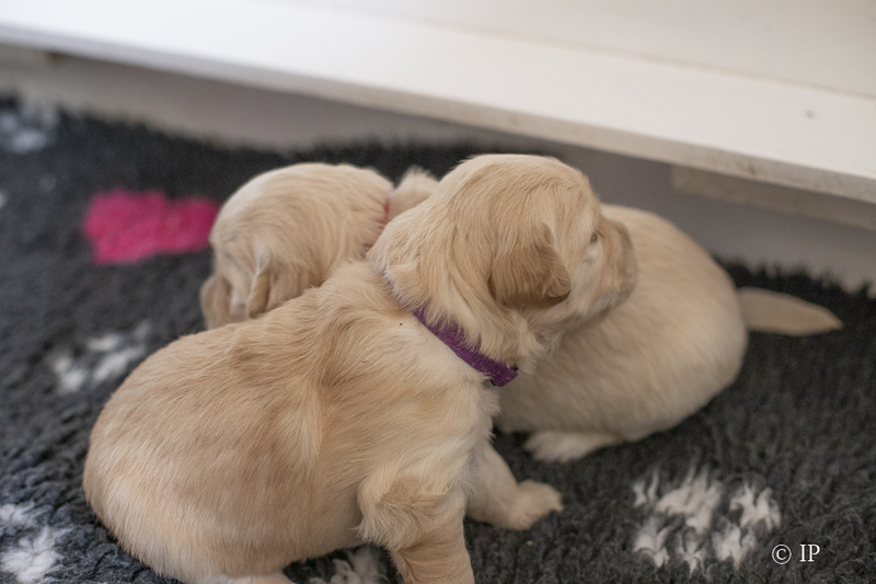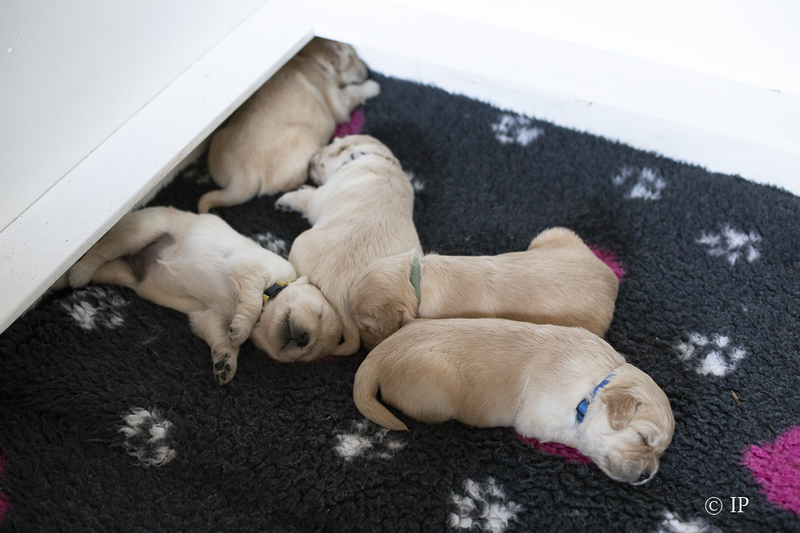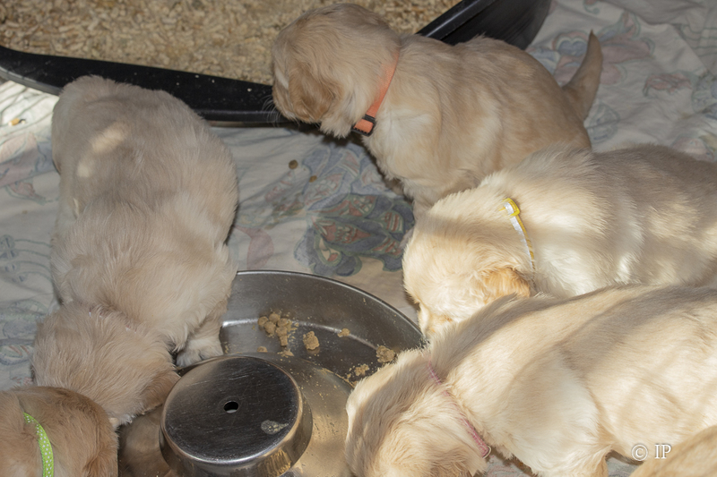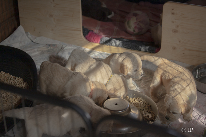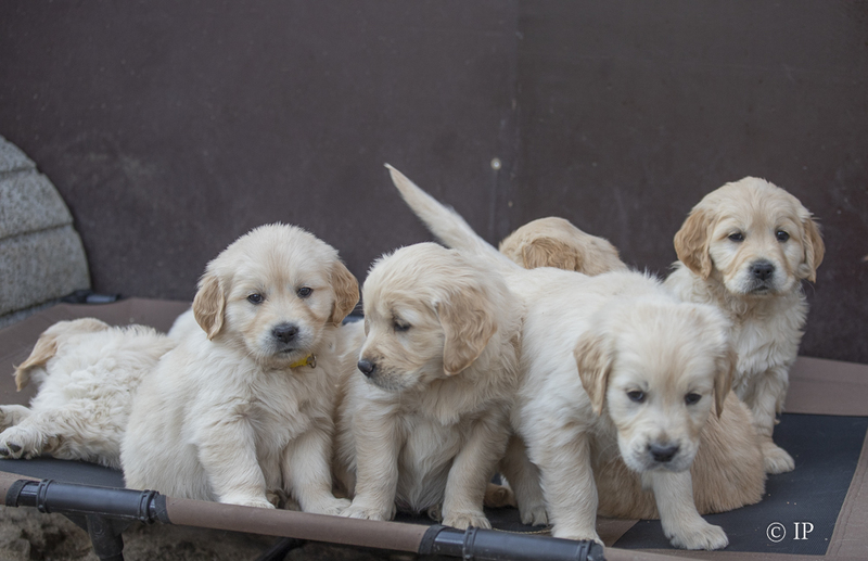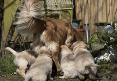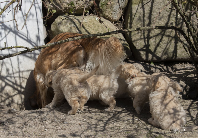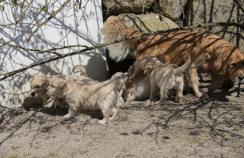 Gemeinsam mit Lilly und Maly erkunden alle Welpen den Garten.