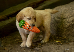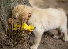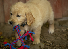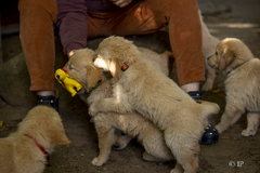 Die Welpen haben großen Spaß mit Spielsachen gehabt!