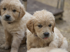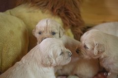 Die Welpen sind drei süße Wochen alt und beginnen munter "herumzuwackeln" ))