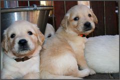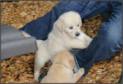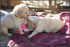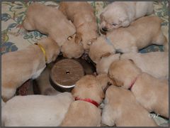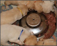 Auf jeden Fall klappt es schon sehr gut, sie essen "ganz gesittet" gemeinsam aus dem Welpenring!