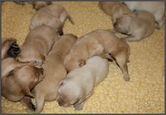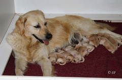 denn 10 Kinder satt zu bekommen, ist eine anstrengende Arbeit für eine Hundemutter.