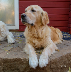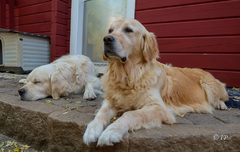 Nina erholt sich schon mal von den Babys und liegt vor der Haustür!