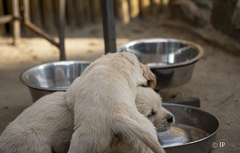 Sie sind immer noch sehr entspannt, satt und zufrieden, denn sie bekommen zusätzlich Ziegenmilch.