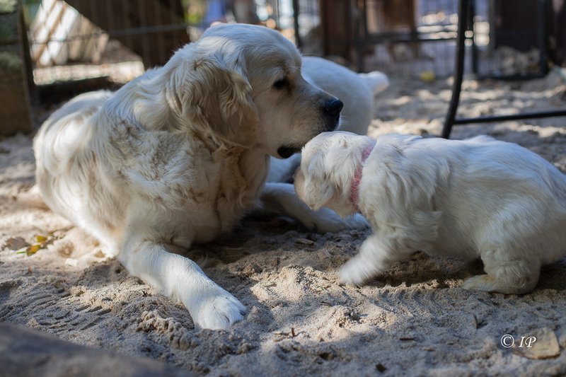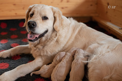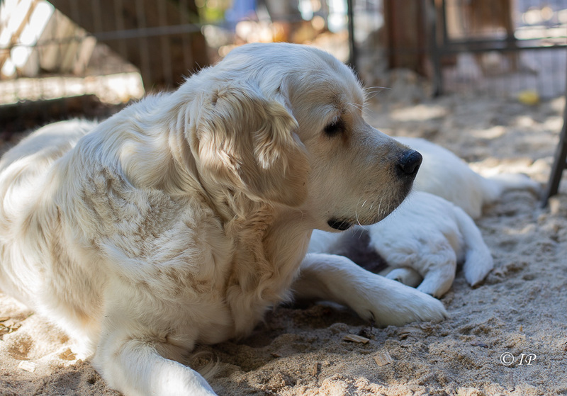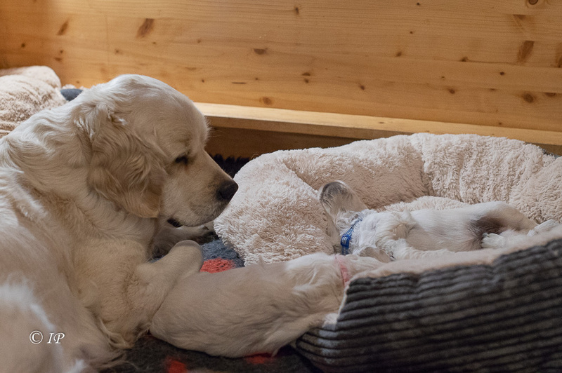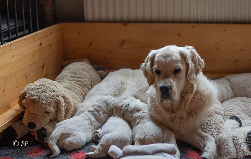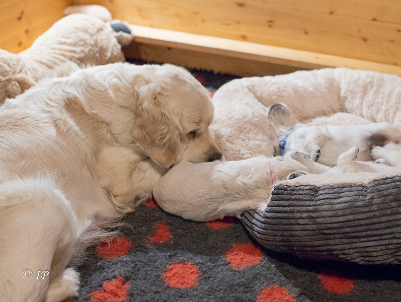 Für eine erfahrene Mutter wie Happy ist das eine entspannte Welpenaufzucht!
