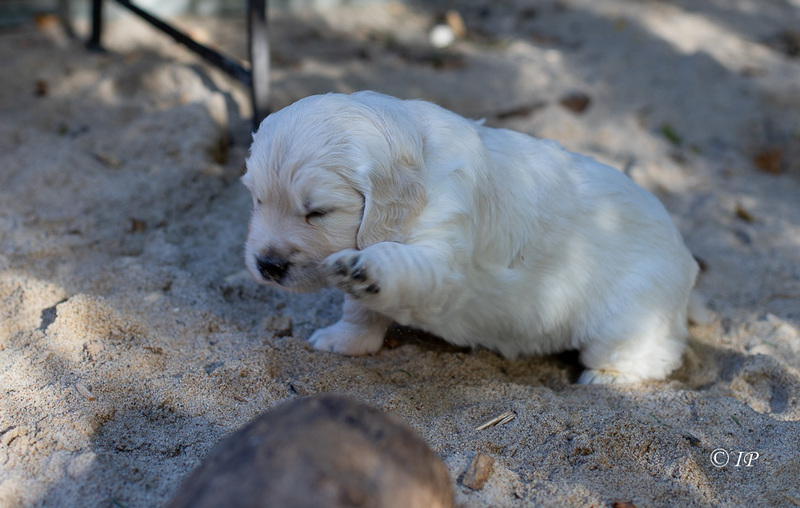 Die warme Herbstsonne macht ein schönes Licht für süße Welpenfotos :)