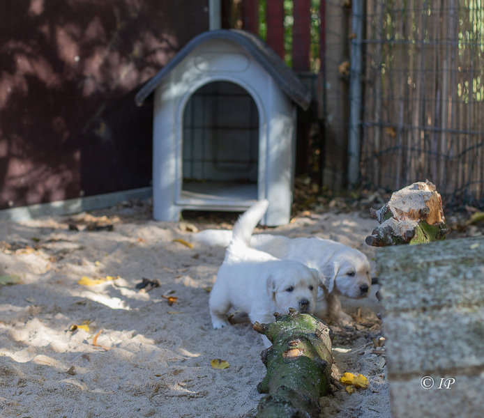 Die drei Moppelchen spielen und schlafen jetzt zusammen mit den Lilly-Babys im Auslauf.