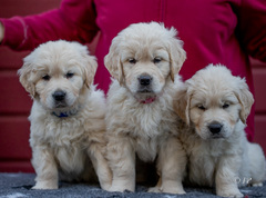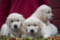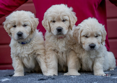 Die drei Welpen sind satt und zufrieden, kurz davor ihre Augen zu öffnen.