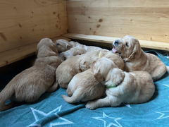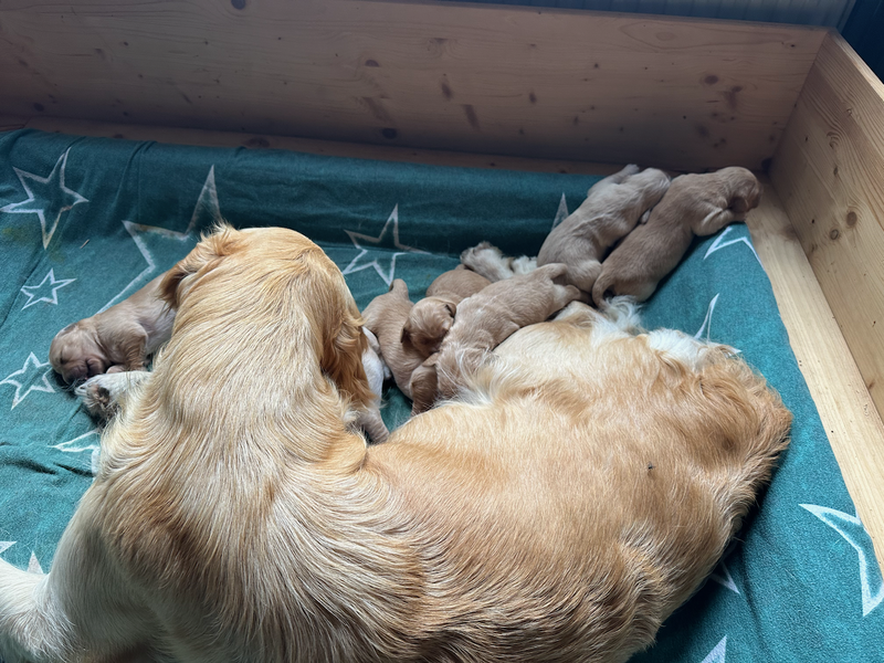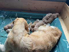 In zwei Stunden sind die Babys geboren, es sind 5 Hündinnen und 3 Rüden!