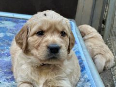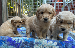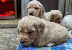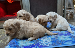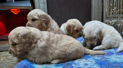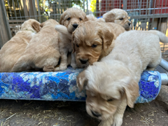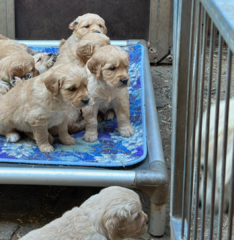 Die fast 6 Wochen alten Hundebabys sind jetzt auch tagsüber im Außenauslauf.