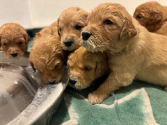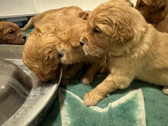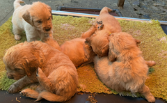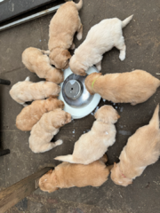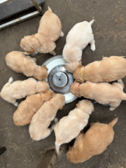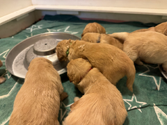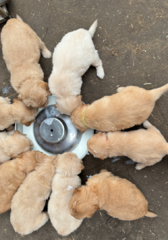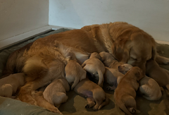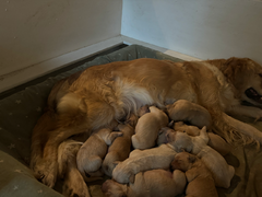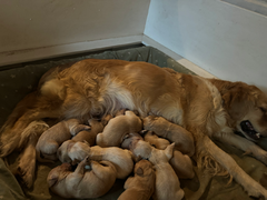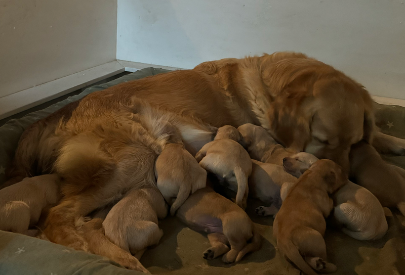 Bei so einem großen Wurf hat es die Hundemutter nicht leicht, alle satt zu bekommen.