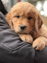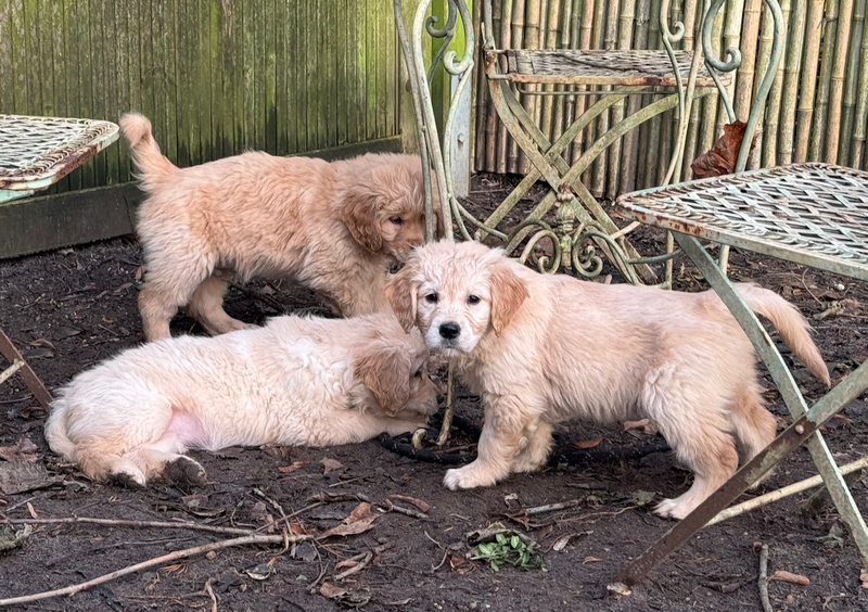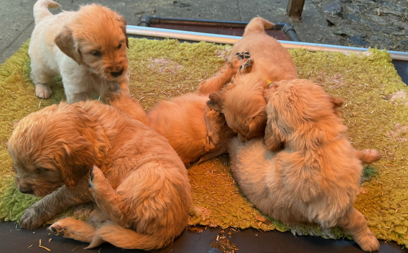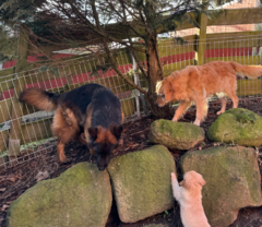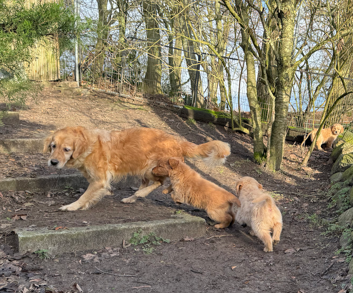 Auch wenn es draußen kälter wird kommen die Welpen für ein paar Stunden hinaus.