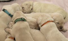Die Babys sind 4 Wochen alt, da sieht es bei Bonny und den Kindern schon richtig munter aus!
