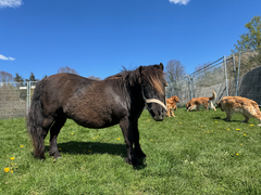 Das uralte Pony Freya (36 Jahre alt) freut sich über die Fellpflege.