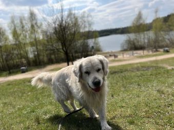 in Brandenburg - das erste Mal ! Es macht uns viel Spaß und auch Gustav macht es in seiner ruhigen und aufmerksamen Art hervorragend mit.