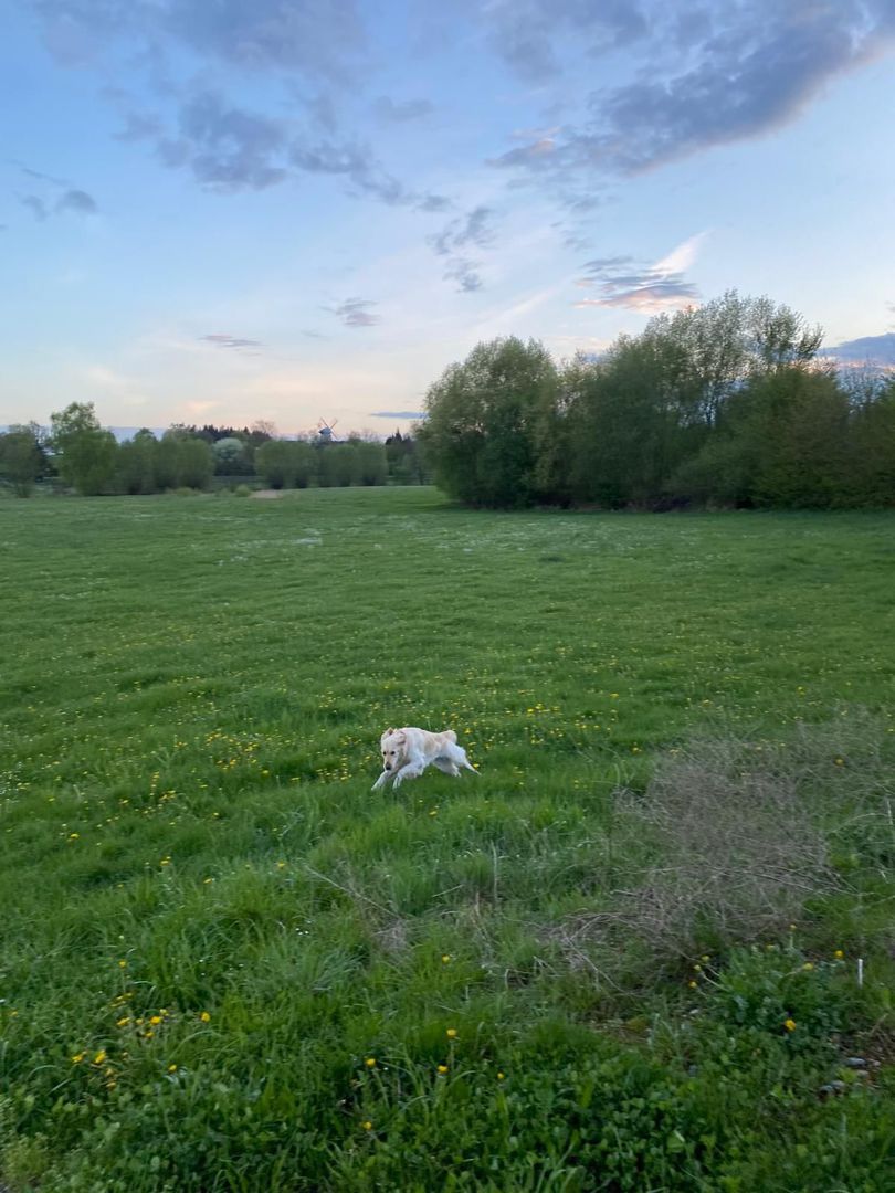 Liebe Marion, vor einem Jahr, so ziemlich um die gleiche Uhrzeit wie heute, durften wir das erste Bild von der lieben Jazzy und ihren Kindern bewundern. Was für eine Freude, als wir erfuhren, dass Du uns eine der kleinen Hündinnen anvertrauen wirst. Nun wird Sie heute schon 1. Jahr und wir könnten verliebter nicht sein. Ihr liebe ( fast zärtliche ) Art allen Lebewesen gegenüber und Ihr feiner Charakter verzaubert uns jeden Tag aufs Neue. Wir danken Dir noch mal von ganzen Herzen für diese Goldstück und dein Vertrauen.